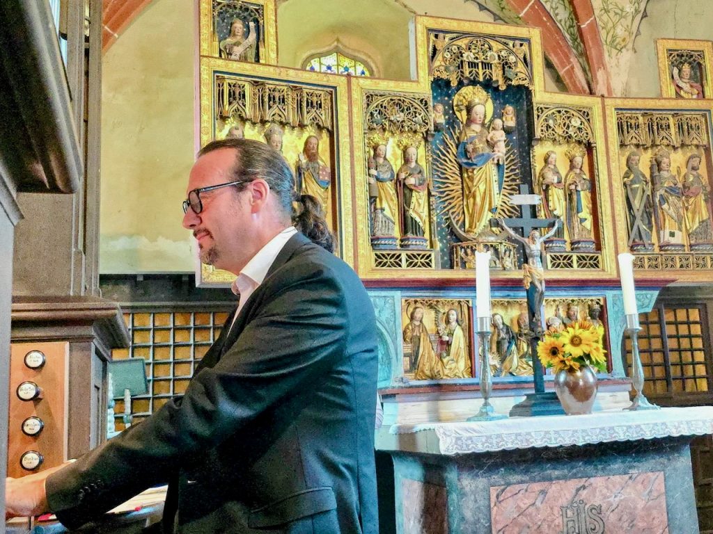 Mit Grünerts Tourneen sollen historische Orgeln eine Würdigung erfahren. Dieses Projekt hat Potenzial für noch viele Jahre, denn Thüringen ist mit mehr als 2000 Instrumenten gesegnet. Allein im Saale-Orla-Kreis sind es um die 200. Matthias Grünert erläuterte am Freitagabend, dass diese oft nur einmanualigen Orgeln mit wenigen Registern eine Herausforderung für Organist und Zuhörer seien. Passende Stücke seien rar und es „rauscht nicht raumfüllend los, wie bei großen Orgeln“. Dafür hätten diese Orgeln oft und wie in der Schweinitzer Dorfkirche den Vorzug, dass sie für alle sichtbar unten vor dem Altar stehen.